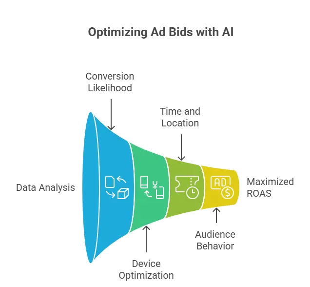 Tools like Google Ads Smart Bidding and Performance Max Campaigns analyze vast datasets in real-time, making thousands of bid adjustments daily to maximize conversions and Return on Ad Spend (ROAS) AI.